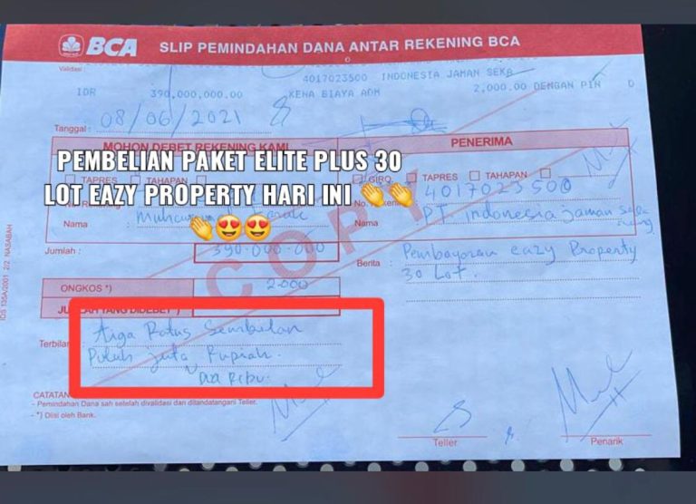 Bukti diatas hanya sebagian dari seluruh bukti bahwa bisnis property bersama Eazy Property diterima masyarakat di indonesia